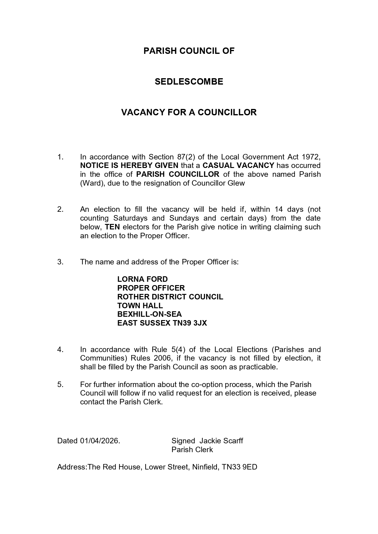 A wide range of powers related to local matters, such as looking after community buildings, open spaces, allotments, litter bins, play areas, planning, street lighting, bus shelters, car parks, youth facilities, leisure and sports facilities, organising events, and much more. A local council also has the power to raise money through taxation, otherwise known as the precept. The precept is the parish council’s share of the council tax. The precept demand is sent to the billing authority, Rother District Council, which collects the tax for the parish council.